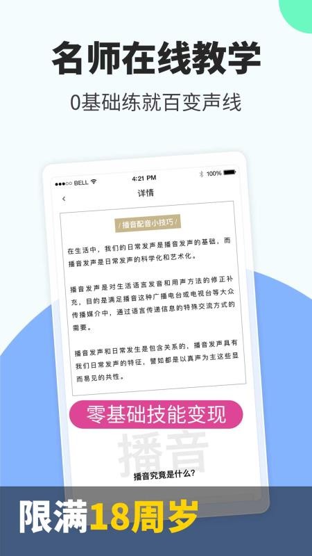 彰显个性,声音是第二张名片,魅力十足;百变声线,从声音里读懂他人;学习周期短,寓教于乐