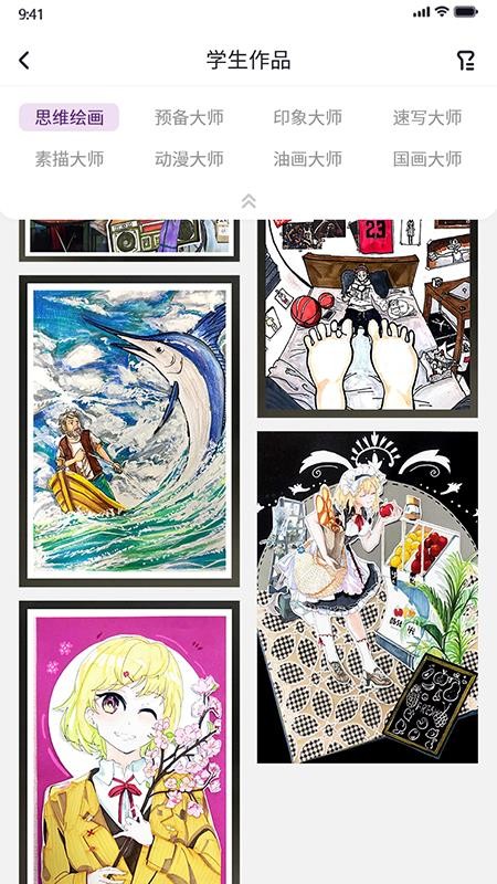 主要提供美术课程教学,拥有丰富的课程随时更新,还能根据需求来选择课程;