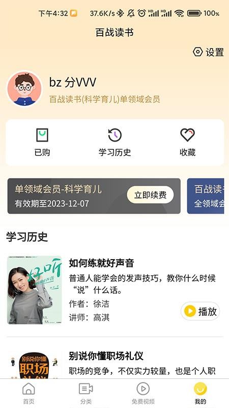 百战读书APP是一款专注于解析各类经典著作的应用程序,涵盖了15个领域,包括职场发展、科学育儿、婚姻家庭、口才与演讲、考试技巧及学习能力等。它能满足用户对不同领域内经典著作的解读需求,并允许用户将优质内容添加到个人收藏中,方便日后查阅。百战读书应用提供免费视频供用户观看,帮助更好地理解各种经典著作。成为会员后,用户可以访问所有解读视频,全面提高自我,拓宽视野,增强个人素养。感兴趣的用户快来下载体验吧。