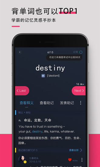 内置高考词库,四级词库,六级词库,考研词库,雅思词库,托福词库等经典英语单词词库。