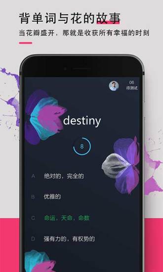 玩游戏也能背单词,全对通关收集花,更有丰富的闯关惊喜等你开启