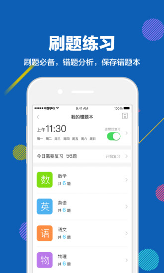 2.智能错题本,手机拍照,一键上传,自动提醒复习计划,支持下载打印。