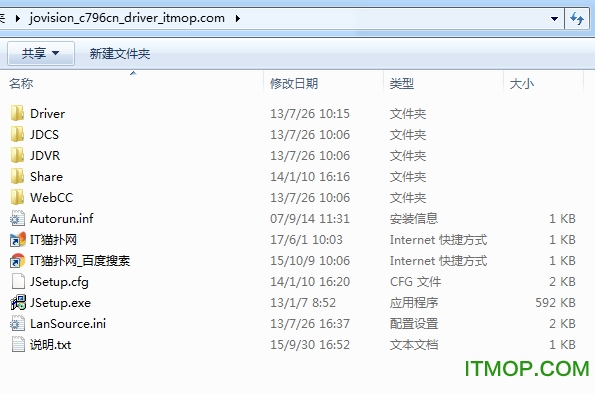 2、前往IT猫扑下载中维世纪C796采集卡驱动,并在电脑上解压。点击名为JSetup_itmop.com.exe的程序,然后点击【安装驱动】,提示安装完毕后,再点击【中维数字监控系统】进行安装。