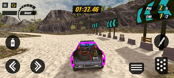 7、在比赛中,玩家可以通过收集赛道上的道具来增强车辆性能,如加速器、防护罩等。