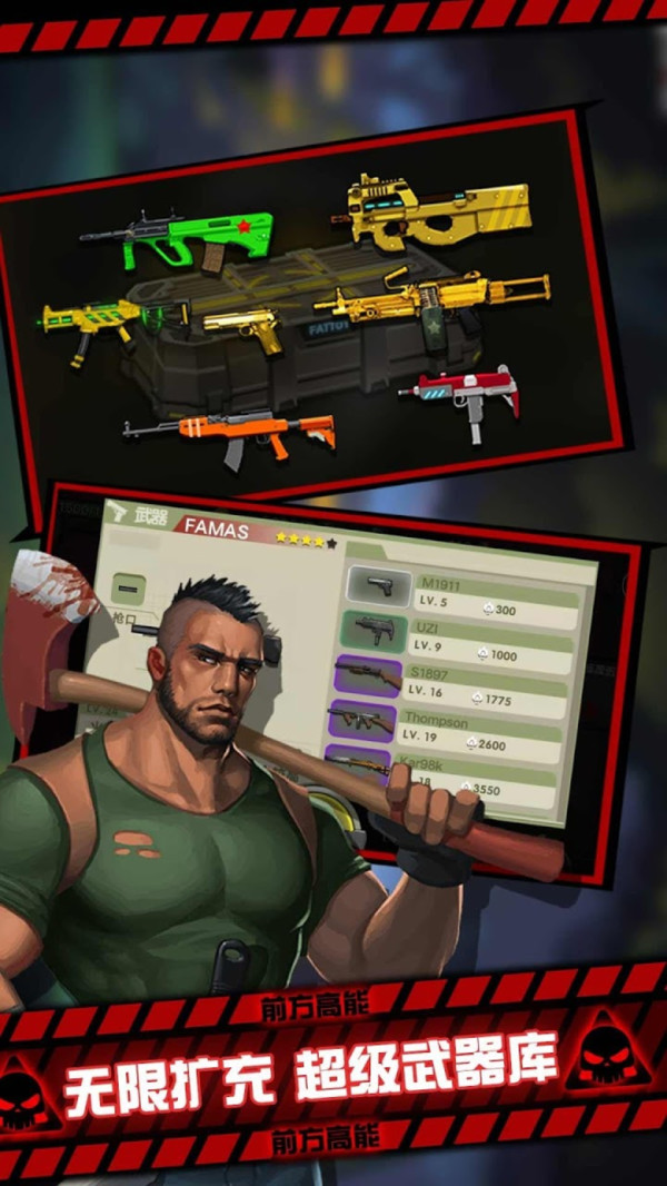 2、僵尸络绎不绝,使用武器击败他们获得奖励。游戏中的僵尸种类繁多,每种僵尸都有其独特的攻击方式和弱点,玩家需要灵活运用武器和策略来应对。