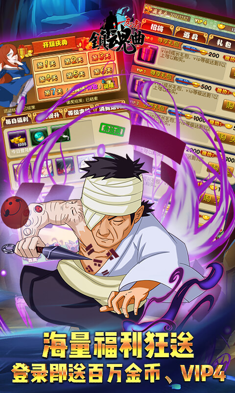 2.上线即送vip4、7000元宝、100w金币。新玩家上线即可获得丰厚的奖励,快速提升自己的实力。