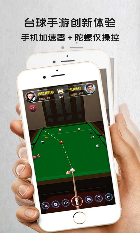 1.通过陀螺仪调整视角,手腕摆动幅度决定击球力量大小,玩家还可以购买具有防滑、防出汗、防指纹的外设体感球杆,享受与真实台球相近的质感、重量和操控体验。