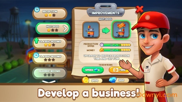 3.免费解锁各种豪华酒店设施,通过不断升级,打造更豪华的酒店。