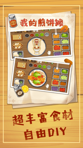 4、丰富的食材和配料系统,玩家可以自由搭配,创造出独一无二的煎饼。