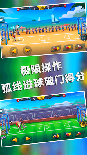 游戏让玩家进行足球比赛,通过合理的指挥队友,将分数拿到更多更高。
