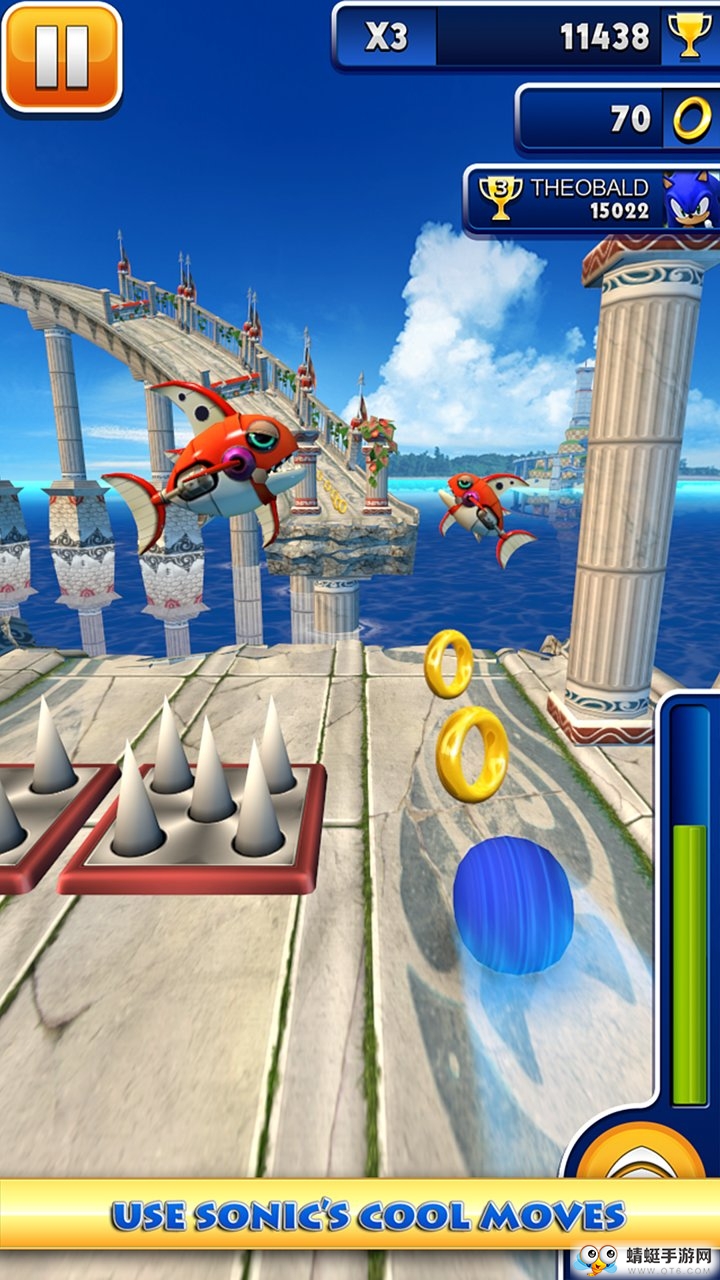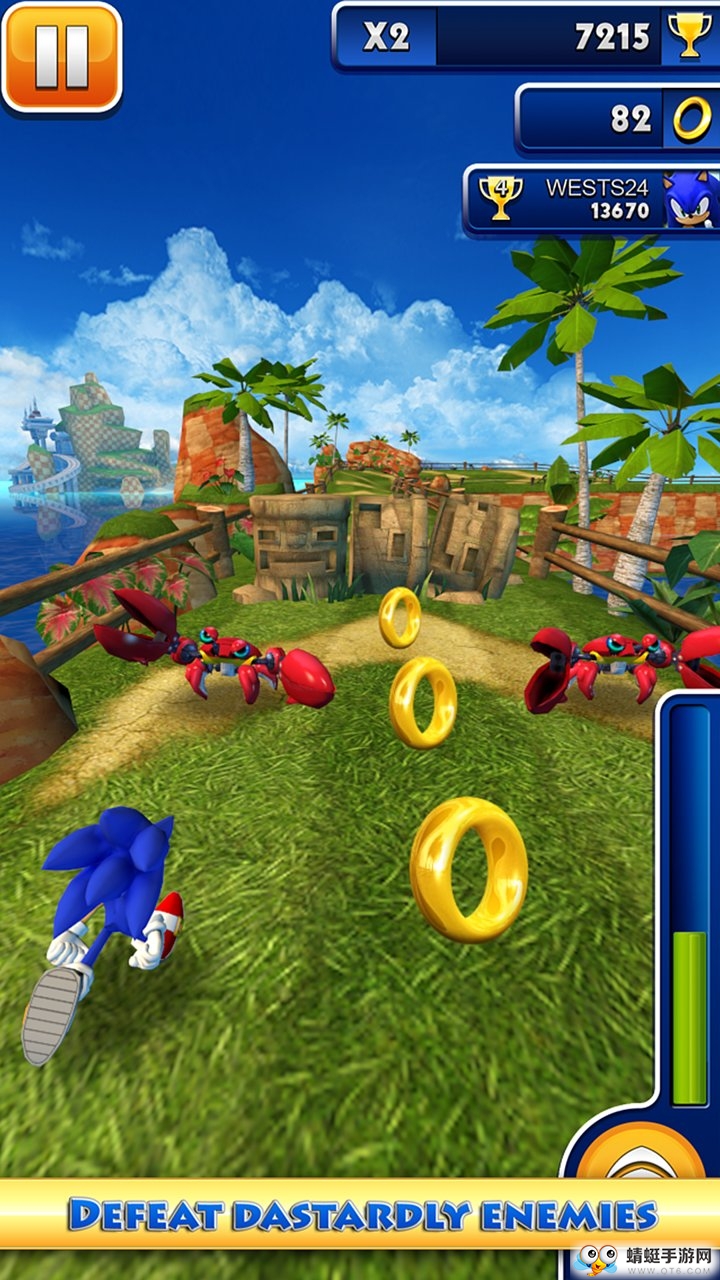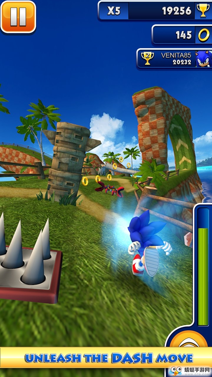 2.“索尼克冲刺”是一款横版动作跑酷游戏,玩家将操控索尼克通过“冲撞”技能,突破重重关卡,最终到达终点。游戏中的关卡设计巧妙,充满了各种挑战和惊喜,让玩家在跑酷的过程中感受到速度与激情的完美结合。