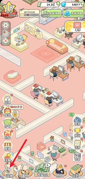1、游戏中点击左下角的设施就可以建设自己的钱庄了。玩家需要合理规划空间,确保钱庄的运营效率。