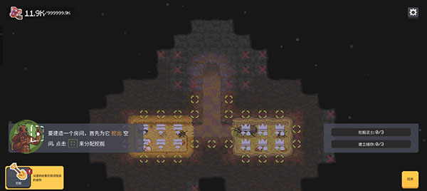 4、然后我们就可以来挖掘附近的土块扩充自己的巢穴了