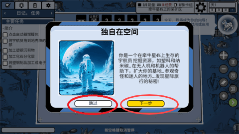 4、游戏将开始,点击进入下一步,开始你的太空探索。