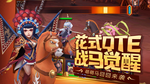 《我朝有马》是网易首款骑战3D卡牌手游,打破了传统手游的废萌风格,将搞怪动漫设计与历史题材完美结合,形成了独特的“贱囧”风格。游戏以历史武将大乱斗为主题,武将和马匹双线成长,玩家可以通过多种培养模式提升实力。创新的鬼畜交融系统为游戏增添了更多趣味性,让玩家在战斗中体验到前所未有的乐趣。游戏背景故事始于“穿越”,中华各个朝代的历史名将因穿越来到三国,开启了一段全新的“打天下”冒险。核心战斗采用“战将骑马”对冲,还原了历史中骑兵对阵的激烈场面。而“马战QTE”则是游戏的一大特色,玩家通过使用武将的主动、被动、援护技能,可以触发独特的QTE特效,让战斗更加精彩纷呈。