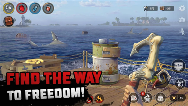 现在你还有一个问题需要处理,准备好为双重努力争取生存。鲨鱼现在加入来自其他生存游戏的僵尸游泳者,并渴望攻击你的浮动避难所。没有地方可以逃脱,所以准备一整天都在拍摄和摆动。在这个版本中,玩家将面对更加凶猛的鲨鱼和更频繁的攻击,需要不断升级木筏的防御设施,才能保护自己的生存空间。此外,游戏还新增了多种防御武器和工具,帮助玩家更好地抵御鲨鱼的攻击。