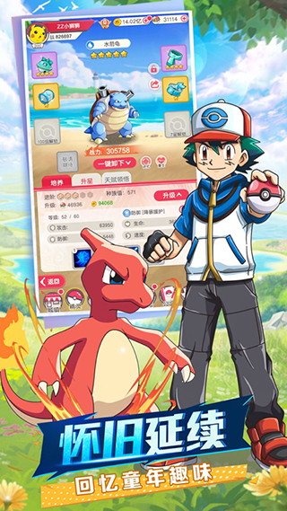 【真实还原口袋剧情】:耳熟能详的对白,真实还原了神奇宝贝口袋妖怪的经典画面。