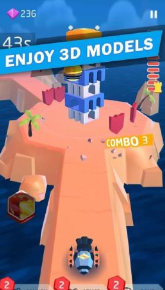 3、很有节奏的游戏,你需要躲避建筑的盾牌,努力的摧毁,游戏节奏紧凑,玩家需要在快速射击的同时,时刻注意盾牌的反弹,增加了游戏的紧张感和挑战性。