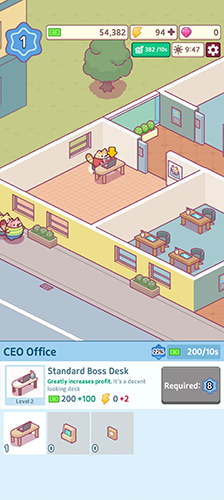 2.与你的办公室猫互动,解锁新任务和关卡。玩家可以通过与猫咪互动,解锁新的任务和关卡,体验更多游戏内容。