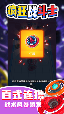 疯狂战斗士是一款极具创意的陀螺竞技游戏,玩家将操控自己的陀螺在螺盘中进行激烈的对战。游戏不仅考验玩家的策略和操作,还提供了丰富的自定义选项,让玩家能够通过更换皮肤和零配件来打造独一无二的陀螺外观。通过完成各种任务和挑战,玩家可以强化陀螺的属性,轻松应对后续的Boss战。游戏内设有多种比赛模式,玩家可以随机选择参与,体验不同的竞技乐趣。最终,玩家将利用自己的智慧和技巧,冲击冠军宝座,赢取丰厚的金币奖励。