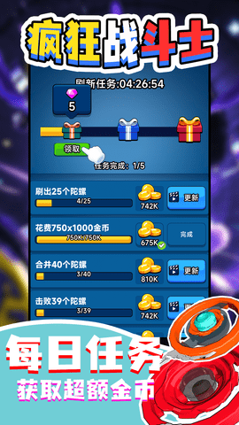 2、完成关卡挑战可以积累更多的金币,从而升级自己的陀螺,提升战斗力。