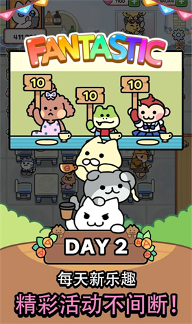 2、雇用&培养专业猫咪员工,为各类餐厅招募猫咪员工,有效提升运营效率。替员工换上可爱时尚的制服,激发士气,提升生产力。管理策略至关重要,快来打造最强猫咪经营团队。