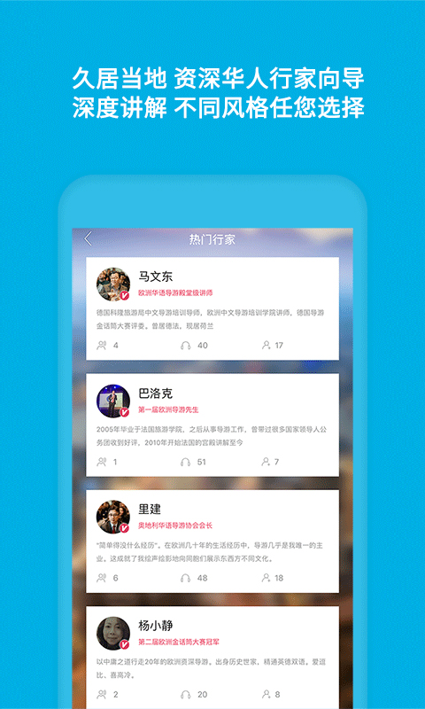 自由行就要玩出深度!ImGuider正是为此而生!我们只选资深行家向导为您带路解说、答疑解惑。他们不仅是久居当地的华人,更是欧洲金话筒大赛冠亚军得主,卢浮宫/乌菲兹美术馆/大英博物馆/罗马梵蒂冈官方导游,明星御用私人向导等等…众多殿堂级的华语导游讲师,现在ImGuider把他们送到你耳边,开启不一样的欧洲听游之旅,让老行家带你玩懂这世界!ImGuider不仅仅是一个旅游软件,它更像是一个贴心的旅行伙伴,帮助你在陌生的城市中找到最地道的体验。无论是历史文化的深度解读,还是当地美食的推荐,ImGuider都能为你提供最专业的建议,让你的旅行更加丰富多彩。