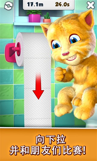 1、在进入游戏之后,玩家可以通过语音与金杰猫互动,给它下达指令,比如让它洗澡、刷牙、拉纸巾等,还可以录制视频分享给朋友,增加游戏的趣味性;