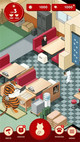 ◆装扮和装饰:在餐厅帮忙并参加活动以解锁新的服装和装饰品!享受为猫咪穿上不同的服装并装饰餐厅上方的房间,打造独一无二的店铺风格。