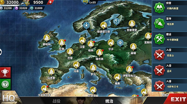 2、玩家可以选择世界上任何一个国家,调整外交策略,向盟国提供援助,或向其他国家宣战,体验不同的外交和军事策略。