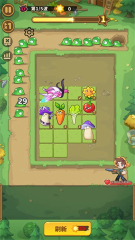 3、点击刷新按钮,获得更多植物,充实你的阵容。新手玩家可以通过完成每日任务和活动,获取更多资源,快速提升植物等级。