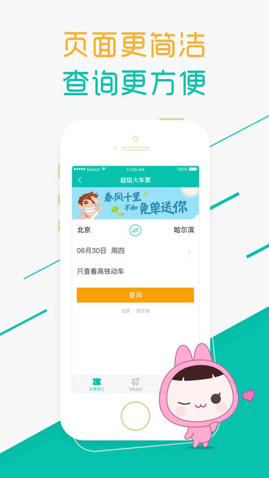 3、支持手机预订火车票:用户可以通过手机轻松预订火车票,查询余票、时刻表、停靠车站、票价等信息;