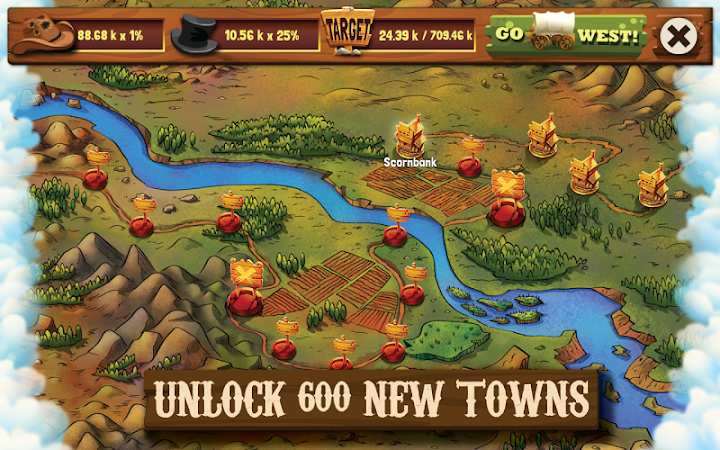 《狂野西部大亨》的故事背景设定在19世纪的美国西部,这是一个充满机遇与挑战的时代。你将在这个充满传奇色彩的土地上,通过掌控数十家企业来建立自己的商业帝国。游戏中的西部世界充满了未知与冒险,你可以雇佣歹徒来保护你的利益,收取专利费来增加收入,甚至亲自参与企业的运营,体验调动巨额财富的快感。在这个充满挑战的世界里,只有最精明、最果断的商人才能脱颖而出,成为真正的西部大亨。通过不断升级企业、销售赃物和收取专利费,你将在西部的开发中积累财富,最终成为富甲一方的商业巨头。