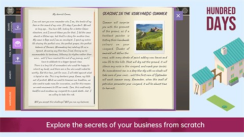 参考了制作人的长辈刚刚进入行业的故事,做了调整而来,你可以体验作为一个新加入行业的人,会需要面对各种挑战,适合新手。在这个模式中,你将跟随剧情逐步了解葡萄酒酿造的基本知识,并通过完成各种任务来提升自己的酿酒技能。