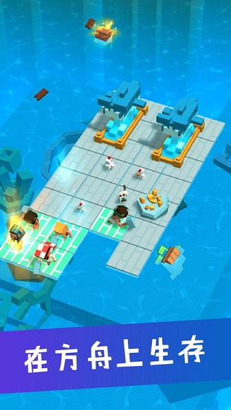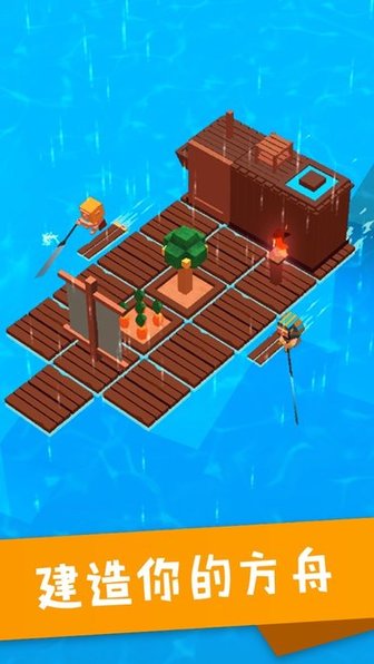 2.最开始玩家只有一块木筏,周围也没有什么的材料,也没有什么生存资源,玩家需要去寻找生存的资源,逐步扩大自己的生存空间。