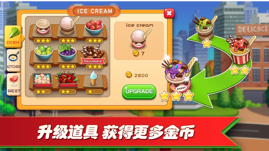 玩家可以升级厨房,使用更好的烹饪道具来提升烹饪效率。同时,通过打扮餐厅,吸引更多顾客光临,玩家可以获得额外的金币和成就,成为明星餐厅。