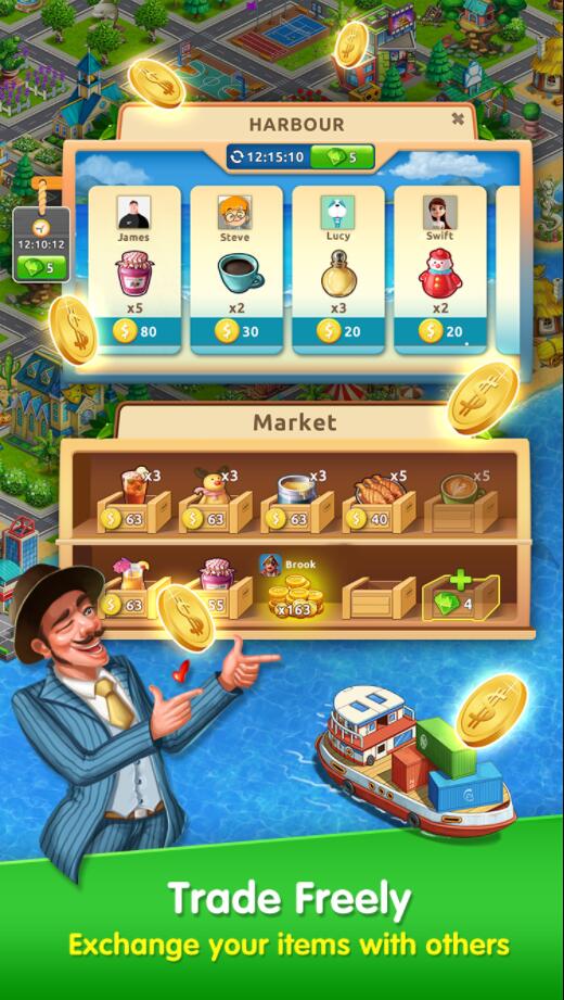 3、玩家自由贸易:游戏支持玩家之间的自由贸易,你可以购买紧急物资,出售仓库物品,与其他岛主互通有无,共同发展,体验真实的贸易乐趣。