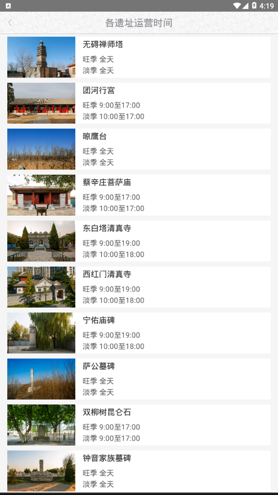 数字大兴提供了丰富的功能,帮助用户更好地规划和管理旅游行程。用户可以通过软件查询各遗址的运营时间,例如无碍禅师塔、团河行宫、晾鹰台等,确保行程安排更加合理。此外,软件还支持实时导览、语音讲解和视频介绍,让用户在游览过程中获得更深入的了解。360°全景展示和VR体验功能则让用户足不出户就能感受景点的魅力。新老照片对比功能则展现了景点的历史变迁,为用户提供独特的视觉体验。无论是查询信息还是体验功能,数字大兴都致力于为用户提供优质的旅游服务。