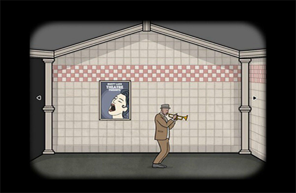 9、去到海报旁边的照相馆,装上把手,拉开帘子,获得报纸。把报纸拿给坐在长椅上的男人,在他看报纸的时候点击他右边的口袋,获得硬币。