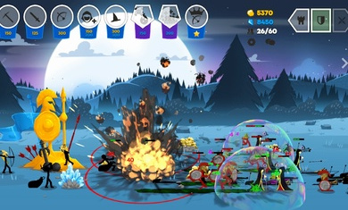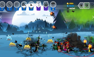 在游戏中,玩家需要组建自己的火柴人战队,开始建造单位,开采黄金,学习剑术、枪矛,训练弓箭手、法师,甚至巨人。玩家需要摧毁敌人的雕像,占领所有的领土,随后还必须指导他们参加战争。唯有灵活的操作和合理的策略,才能顺利击败多种敌人,取得最终的胜利。