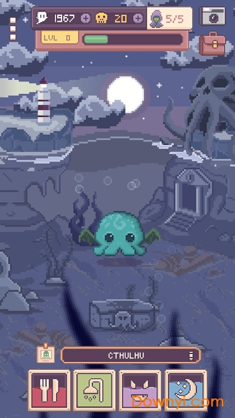 1.复古画风让游戏的趣味性无形得到提升,可爱的克苏鲁需要你的陪护才能成长变强。游戏采用了经典的像素风格,画面简洁而不失趣味,让玩家在怀旧的氛围中享受养成的乐趣。
