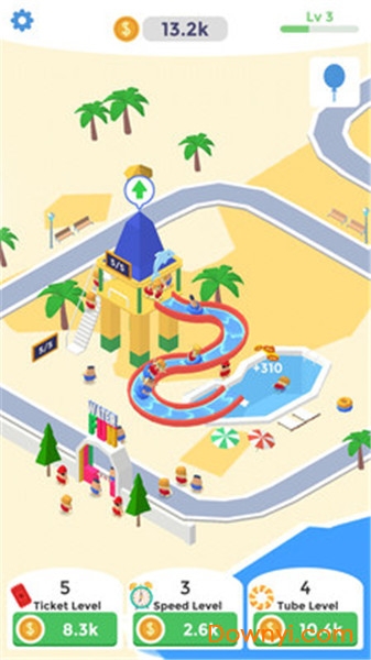 2、玩家在游戏中不仅要提升自己的等级,还需要不断升级游乐园的娱乐设施。通过升级设施,你可以吸引更多游客,赚取更多金币,从而进一步扩大你的水上乐园规模。
