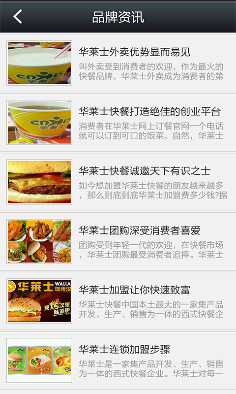 3.平台以便捷的浏览方式和最新的资讯信息,为广大用户展开了一幅丰富的华莱士品牌画卷,让您深入了解华莱士的方方面面。