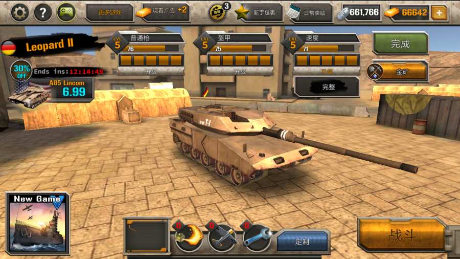 3、用收集到的道具和金钱升级你的坦克,提升战斗力,成为战场上的王者。