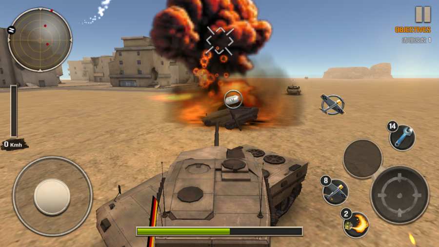 2、在狂野的沙漠中使用坦克战斗,体验不同地形带来的战斗挑战。