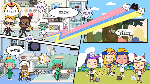 实验室及治疗层:手术台为患者提供8种大型手术诊断,使用多种真实的医院工具、绷带、病床、轮椅等帮助病人进行康复;在实验室可以使用神秘元素开发新的药物,探索医疗科技的新领域。