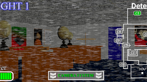 2、你可以使用摄像系统来监控巴迪老师和他的朋友们的行踪,但需要格外小心。此外,办公室的门可以用来抵御他们的攻击,但关闭的门会更快地消耗电力,而你只有有限的资源来度过这个漫长的夜晚。