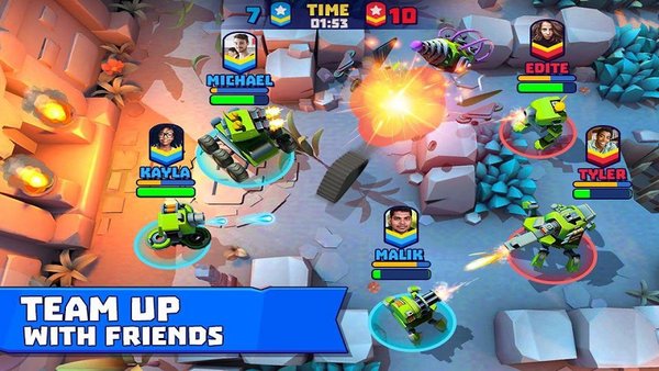 坦克战争(TanksALot)是一款极具动感的多人合作竞技手游,游戏画面精致,玩法新颖有趣。玩家可以收集数十种部件,打造属于自己的个性坦克,自由度极高。坦克上还能装备不同攻击属性的武器,无论是近距离攻击还是远程秒杀,都能找到适合自己的战斗风格。游戏提供四种不同的战斗模式,包括死斗、资源战、大乱斗以及足球赛模式,休闲与竞技相结合,随时随地都能开启一局。喜欢坦克对战的玩家,快来定制你的专属坦克,统治战场吧!