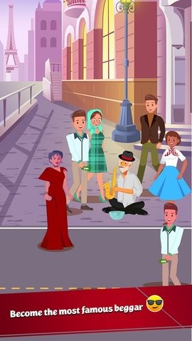 1、游戏初期,玩家需要通过乞讨来维持生计,但随着游戏的进展,你将逐渐发现其他赚钱的方法,逐步改善自己的生活条件。2、玩家可以游览世界各地的城市,每个城市都有其独特的文化和资源。在旅途中,你还有机会结交各种好友,这些好友将为你提供帮助,让你体验到更好的生活。3、游戏中,玩家可以扮演不同的角色,尝试各种工作,只要能够在游戏中保证自己存活下去,你就可以体验到不同职业的乐趣和挑战。