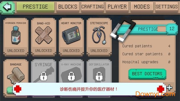 医院工艺中文版是一款独具特色的像素风格医院模拟游戏。在这个游戏中,玩家将扮演一位医院管理者,通过不断解锁新设备和提升医术来吸引更多病人。游戏提供了极高的自由度,玩家可以根据自己的喜好扩建医院,面对各种稀奇古怪的病症,挑战自己的医疗技能。游戏内容丰富多样,从医院的设计到病人的治疗,每一个环节都充满了乐趣和挑战。无论是喜欢策略经营还是模拟建造的玩家,都能在这款游戏中找到属于自己的乐趣。快来体验这款充满创意的医院模拟游戏,展现你的管理才能和医疗智慧吧!